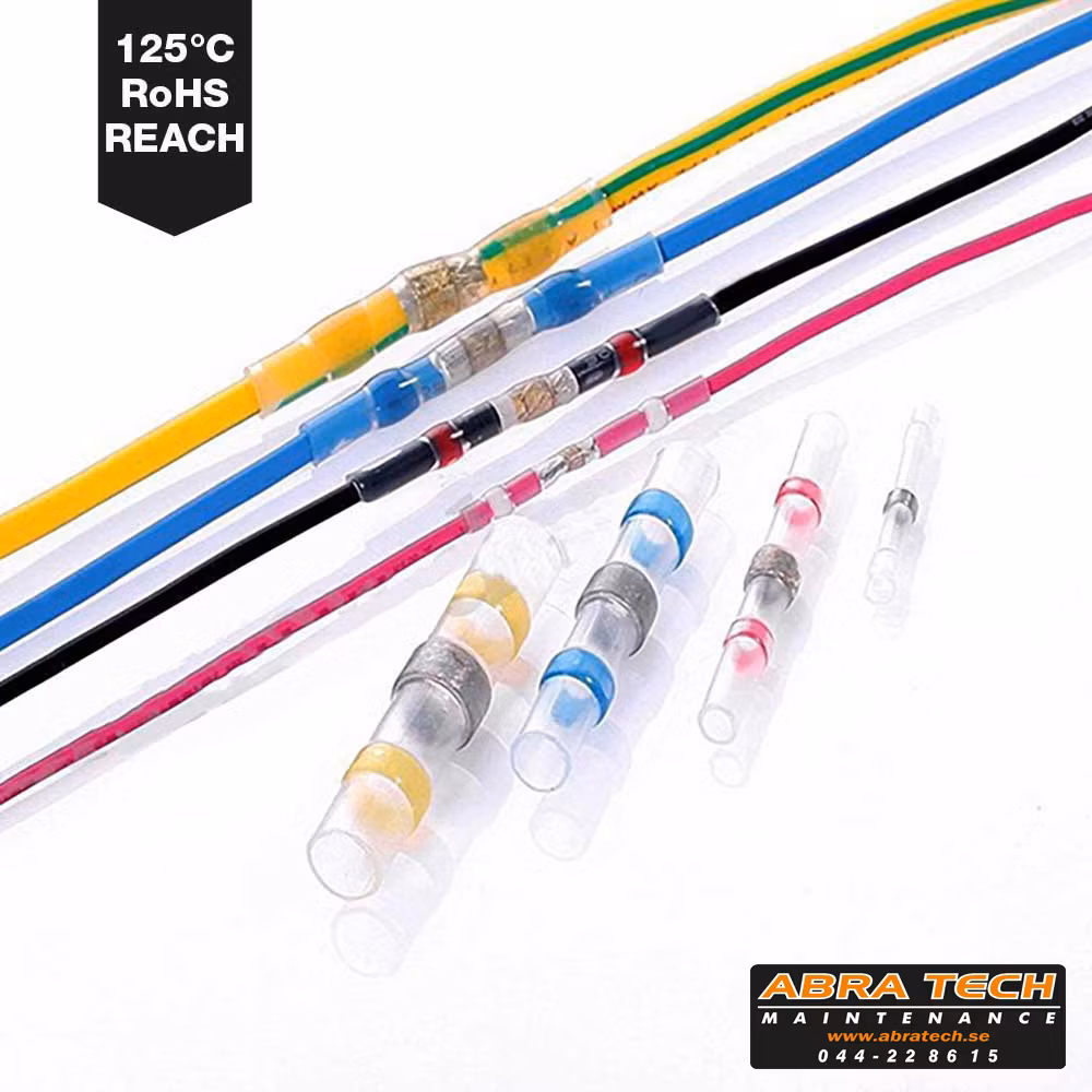 Krympskarvshylsa med inbyggt lödtenn och med lim i krympslangen för att snabbt göra en proffesionell koppling, motståndig mot fukt. Är användbar till både en- och mångledare, även tillsammans. Ger en helt vattentät anslutning med genomskinlig isolering som är lätt att inspektera.
